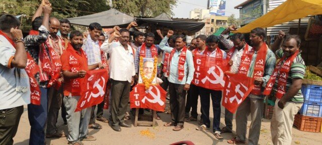 కోదాడ, ఏప్రిల్ 6(నేటి తెలుగు పత్రిక): భారత కార్మిక ఉద్యమ నిర్మాత భారత కమ్యూనిస్టు ఉద్యమ అగ్రజాలా బ్రిటిష్ వాళ్లకు కు వ్యతిరేకంగా జరిగిన స్వాతంత్ర పోరాటంలో పాల్గొన్న కామ్రేడ్ బిటి రణదీవే ఆశయాలను సాధించడానికి ప్రతి కార్మికుడు ముందుకు రావాలని సిఐటియు జిల్లా అధ్యక్షులు కోటగిరి వెంకటనారాయణ కార్మికులకు పిలుపునిచ్చారు.స్థానిక కోదాడ పట్టణంలో సిఐటియు ఆధ్వర్యంలో బీటీ రణదీవే 36వ వర్ధంతిని ఘనంగా నిర్వహించడం జరిగింది.ఈ సందర్భంగా వారు మాట్లాడుతూ బీటీ రుణదీవే (బాలచంద్ర త్ర యంబు క రణదీవే) 1904 డిసెంబర్ 19న మహారాష్ట్రలోని బొంబాయిలో జన్మించిన విద్యార్థి ఉద్యమంలో పాల్గొంటూ కార్మిక సంఘ నాయకత్వంలో పనిచేస్తూ బ్రిటిష్ కాలంలోనే బొంబాయిలో కార్మిక సంఘాలు స్థాపించి అనేక పోరాటాలకు నాయకత్వ వహించారని వారన్నారు. భారతదేశంలో మొట్టమొదటి అఖిలభారత ట్రేడ్ యూనియన్ జాతీయ నాయకుడిగా , 1970లో (సిఐటియు ) ఏర్పడిన నాటినుండి 1991 వరకు సిఐటియు అధ్యక్షుడిగా పనిచేశారని వారన్నారు. వారికి కార్మికుల ప్రయోజనాలు తప్ప సొంత జీవితం పట్ల ఆసక్తి లేని నిస్వార్థ నేత బి టి ఆర్, తన తండ్రి అంత్యక్రియలకు కూడా వెళ్లకుండా కార్మిక పోరాటంలో ఉన్న తీరు కార్మిక వర్గానికి ఆయన ఇచ్చిన ప్రాధాన్యతకు నిదర్శనమని వారన్నారు. 1940లో కార్మిక ఉద్యమాల్లో భాగంగా అరెస్టు చేసి జైల్లో ఉంచిన సందర్భంగా అక్కడ కూడా ఖైదీలను ఐక్యం చేసి వారి సమస్యలపై పోరాటాలు నిర్వహించారని, వారికి జైల్లోనే రాజకీయ శిక్షణ తరగతులు నిర్వహించారు.