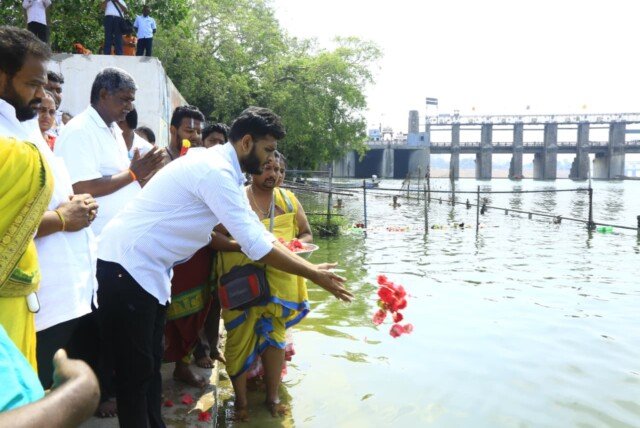 ఏప్రిల్ 07, నేటి తెలుగు పత్రిక: విజయవాడలో అమరావతి రాజధాని అభివృద్ధిని ఆకాంక్షిస్తూ ప్రత్యేక జలహారతి కార్యక్రమం నిర్వహించారు. నవ్యాంధ్రప్రదేశ్ చాత్తాద శ్రీ వైష్ణవ సంఘం ఆధ్వర్యంలో దుర్గా ఘాట్ వద్ద జరిగిన ఈ కార్యక్రమంలో ఎంపీ కేశినేని శివనాథ్ కుమారుడు కేశినేని వెంకట్ ముఖ్య అతిథిగా పాల్గొన్నారు.ఈ సందర్భంగా కేశినేని వెంకట్ మాట్లాడుతూ, ఆంధ్రప్రదేశ్ అభివృద్ధి సమర్థ నాయకత్వంతోనే సాధ్యమని, ముఖ్యంగా అమరావతిని ప్రపంచ స్థాయి నగరంగా తీర్చిదిద్దే సామర్థ్యం సీఎం చంద్రబాబు నాయుడుకే ఉందన్నారు. రాజధానికి చట్టబద్ధత లభించడం రాష్ట్ర ప్రజలందరికీ ఆనందదాయకమని తెలిపారు. కార్యక్రమంలో భాగంగా కృష్ణానదికి జలహారతి ఇవ్వడంతో పాటు, అమరావతి నిర్మాణం నిరంతరాయంగా కొనసాగాలని ప్రార్థనలు చేశారు. రాజధాని బిల్లుకు మద్దతు తెలిపిన కేంద్రం, రాష్ట్ర నాయకులకు సంఘ సభ్యులు కృతజ్ఞతలు తెలిపారు.అమరావతి అభివృద్ధి వేగవంతం కావడంతో పాటు విజయవాడను గ్రేటర్ సిటీగా అభివృద్ధి చేయాలని ఈ సందర్భంగా విజ్ఞప్తి చేశారు. కార్యక్రమంలో సంఘ ప్రతినిధులు, స్థానిక నాయకులు, భక్తులు పాల్గొన్నారు.