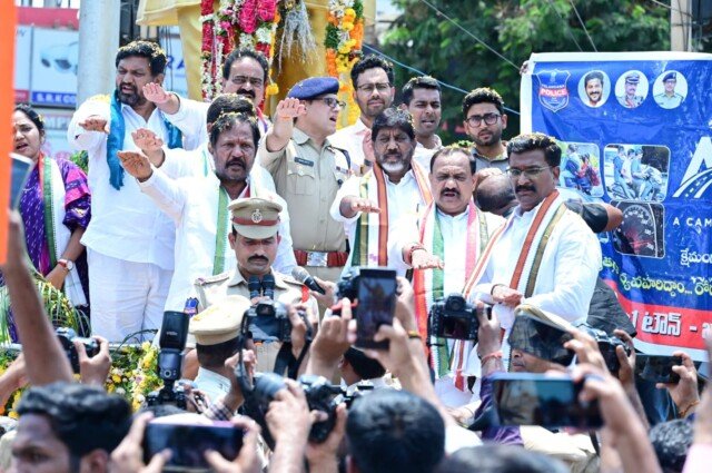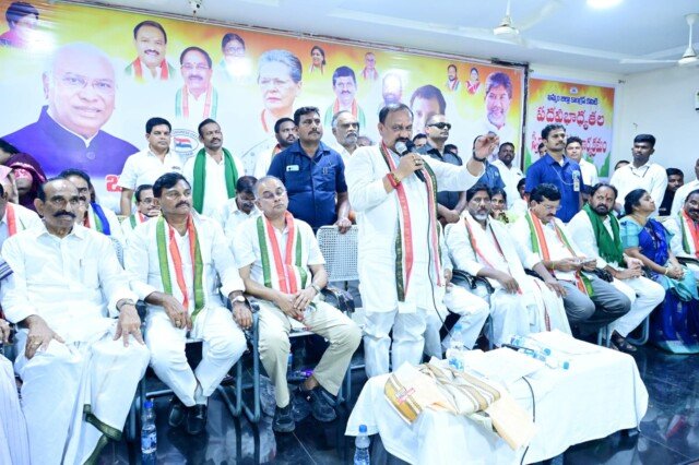 ఏప్రిల్ 14, నేటి తెలుగు పత్రిక: ఖమ్మం జిల్లాలో జరిగిన డీసీసీ కార్యవర్గ సమావేశంలో టీపీసీసీ అధ్యక్షుడు మహేష్ కుమార్ గౌడ్ పాల్గొన్నారు. ఈ కార్యక్రమానికి డిప్యూటీ సీఎం భట్టి విక్రమార్క కూడా హాజరయ్యారు. ఈ సందర్భంగా డీసీసీ అధ్యక్షుడు నూతి సత్యనారాయణ, కాంగ్రెస్ శ్రేణులు నాయకులకు ఘన స్వాగతం పలికారు. సమావేశం అనంతరం కాంగ్రెస్ పార్టీ ఆధ్వర్యంలో ఖమ్మంలో భారీ ర్యాలీ నిర్వహించారు. ఈ ర్యాలీలో పెద్ద సంఖ్యలో కార్యకర్తలు పాల్గొన్నారు. టీపీసీసీ అధ్యక్షుడు మహేష్ కుమార్ గౌడ్, డిప్యూటీ సీఎం భట్టి విక్రమార్క కలిసి కాంగ్రెస్ జెండాను ఆవిష్కరించారు.అంబేద్కర్ జయంతి సందర్భంగా కాంగ్రెస్ నాయకులు అంబేద్కర్ విగ్రహానికి పూలమాలలు సమర్పించి ఘన నివాళులు అర్పించారు. ఈ సందర్భంగా నాయకులు అంబేద్కర్ ఆశయాలను కొనసాగించేందుకు కట్టుబడి ఉన్నామని పేర్కొన్నారు.