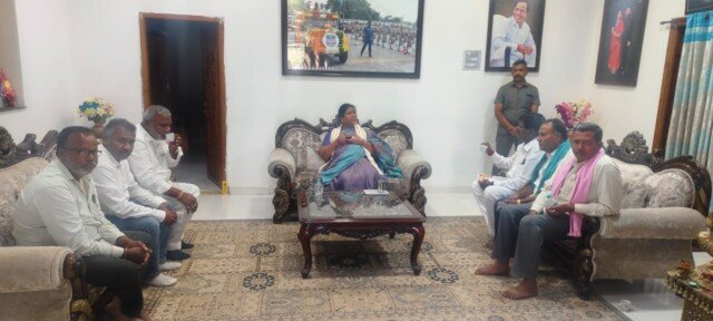 కొమరం భీం జిల్లా ఆసిఫాబాద్ ఎమ్మెల్యే కోవా లక్ష్మీ గారి నివాసంలో సమావేశమైన తెలంగాణ రాష్ట్ర లారీ అసోసియేషన్ నాయకులు రాబోయే పట్టభద్రుల ఎమ్మెల్సీ ఎన్నికల సందర్భంగా ఆసిఫాబాద్ ఎమ్మెల్యే కోవా లక్ష్మీ గారి నివాసానికి వెళ్లి వారిని మర్యాదపూర్వకంగా కలిసి టీచర్స్ అభ్యర్థి అయినటువంటి ముల్క కొమరయ్య గారిని పట్టబద్రుల అభ్యర్థి అయిన అంజి రెడ్డి గారికి జరగబోయే పట్టభద్రుల ఎన్నికల్లో శాసనసభ్యులైనా కోవా లక్ష్మీ గారి సహాయ సహకారాలు అందజేయవలసిందిగా కోరినారు. ఈ సందర్భంగా వారు మాట్లాడుతూ తప్పకుండా మా బి ఆర్ ఎస్ పార్టీ కాంగ్రెస్ పార్టీకి వ్యతిరేకం కాబట్టి రాబోయే ఎమ్మెల్సీ ఎన్నికల్లో మీరు చెప్పిన విధంగా ఇద్దరు అభ్యర్థులకు మాకు సంబంధించిన ఓట్లు వేపిస్తామని హామీ ఇచ్చినారు. ఈ కార్యక్రమంలో రాష్ట్ర అసోసియేషన్ చైర్మన్ రామినేని శ్రీనివాసరావు కార్యనిర్వాహక అధ్యక్షులు అబ్దుల్ బారి, mca రాష్ట్ర లారీ అసోసియేషన్ చీఫ్ అడ్వైజర్ ఆవుల రామారావు పాల్గొన్నారు. తదనంతరం ఆసిఫాబాద్ మున్నూరు కాపు సంఘం ఆధ్వర్యంలో సమావేశం జరిపి ముల్క కొమరయ్య గారిని టీచర్స్ అభ్యర్థి అంజి రెడ్డి గారిని గెలిపించవలసిందిగా సమావేశంలో కోరినారు……….
