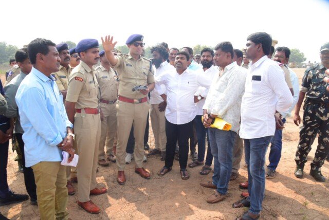 సభా ప్రాంగణ మ్యాప్ ఆధారంగా భద్రతా పరంగా తీసుకోవాల్సిన జాగ్రత్తలను, బారికేడ్ల నిర్మాణ శైలిని సీపీ పరిశీలించారు. ప్రజలకు ఎలాంటి ఇబ్బంది కలగకుండా పటిష్టమైన బారికేడ్ విధానాన్ని అమలు చేయాలని అధికారులను ఆదేశించారు.సభా ప్రాంగణం మరియు పరిసర ప్రాంతాలను డ్రోన్ కెమెరాల ద్వారా క్షుణ్ణంగా పర్యవేక్షించారు. ఈ సందర్భంగా భద్రతా ఏర్పాట్లు మరియు భౌగోళిక పరిస్థితులను ఎమ్మెల్యే మేడిపల్లి సత్యంకు వివరించారు.సభకు వచ్చే వాహనాల కోసం కేటాయించిన పార్కింగ్ స్థలాలను పరిశీలించి, ట్రాఫిక్ జామ్ కాకుండా ముందస్తు ప్రణాళికలు సిద్ధం చేయాలని సూచించారు.ముఖ్యమంత్రి పర్యటన నేపథ్యంలో భారీ పోలీస్ బందోబస్తు ఏర్పాటు చేస్తున్నామని, ఎక్కడా చిన్నపాటి లోటుపాట్లు లేకుండా చర్యలు తీసుకుంటున్నామని సీపీ స్పష్టం చేశారు.ఈ కార్యక్రమంలో పోలీస్ అధికారులు, రెవెన్యూ సిబ్బంది మరియు స్థానిక ప్రజాప్రతినిధులు పాల్గొన్నారు.