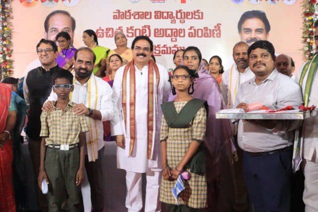 తెనాలిలో కంటి అద్దాల పంపిణీని ప్రారంభించిన మంత్రులు సత్యకుమార్, నాదెండ్ల మనోహర్.