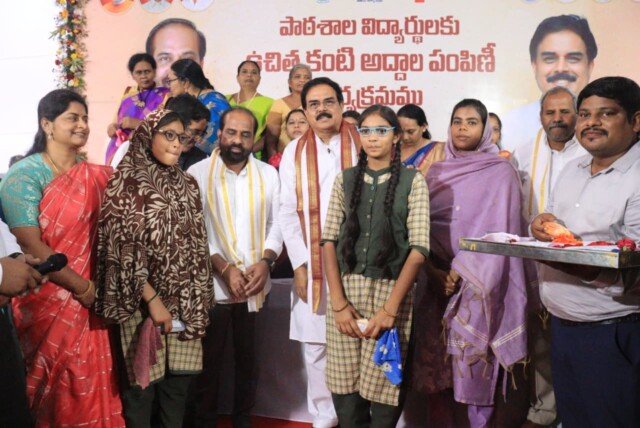 తెనాలి, పిబ్రవరి03 (నేటి తెలుగు దిన పత్రిక ప్రతినిధి): విద్యార్థులకు కంటి పరీక్షల నిర్వహణలో కూటమి ప్రభుత్వం అనుసరిస్తున్న విధానం పొరుగు రాష్ట్రాల వారికి ఆదర్శంగా ఉందని రాష్ట్ర వైద్య, ఆరోగ్య శాఖ మంత్రి శ్రీ సత్యకుమార్ యాదవ్ తెలిపారు. గుంటూరు జిల్లా తెనాలి పట్టణంలోని ప్రభుత్వ పాఠశాలల విద్యార్థులకు ఉచిత కళ్లజోళ్ల పంపిణీ ప్రారంభ రాష్ట్ర కార్యక్రమం మంగళవారం జరిగింది. వైద్య ఆరోగ్య శాఖ మంత్రి సత్యకుమార్ యాదవ్, పౌరసరఫరాల శాఖ మంత్రి నాదెండ్ల మనోహర్, కంటి అద్దాలను అందచేశారు. దీనినకి అనుగుణంగా ఇతర జిల్లాలోని విద్యార్థులకు కంటి అద్దాలు పంపిణీ ప్రారంభమైంది.