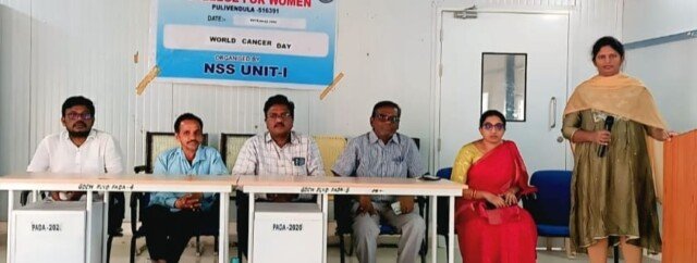 పులివెందుల ఫిబ్రవరి 4 ( నేటి తెలుగు పత్రిక ప్రతినిధి): పొగాకు, ప్లాస్టిక్ రహిత ఆహారాలతో కాన్సర్ నియంత్రణ సాధ్యం అని ప్రభుత్వ సర్వజన ఆసుపత్రి ప్రముఖ సర్జన్ వైద్యులు డాక్టర్ సుకన్య పేర్కొన్నారు. ప్రపంచ కాన్సర్ దినం సందర్బంగా పులివెందుల పట్టణం లోని ప్రభుత్వ మహిళా డిగ్రీ కళాశాల లలో ఎన్ఎస్ఎస్ యూనిట్ 1&2 మరియు స్నేహిత అమృత హస్తం సేవాసమితిల సంయుక్త ఆధ్వర్యంలో బుధవారం విద్యార్థినిలకు కాన్సర్ పై అవగాహనా కార్యక్రమం నిర్వహించారు. ఈ సందర్బంగా డాక్టర్ సుకన్య మాట్లాడుతూ ప్రస్తుత కాలక్రమేణా మనిషి జీవన శైలి, ఆహారపు అలవాట్లు, వాతావరణ మార్పులు మానవాళి మనుగడ పై తీవ్ర ప్రభావం చూపుతున్నాయి అని,పురుషులలోను, మహిళలలోనూ శరీరం లో వచ్చే కాన్సర్ ల రకాలను వివరించారు. అలాగే కాన్సర్ వచ్చే మార్గాలు, కాన్సర్ గుర్తించే పద్ధతులు, కాన్సర్ రాకుండా తీసుకోవాల్సిన జాగ్రత్తలు, కాన్సర్ నియంత్రణ మార్గాలను వివరించారు. ఈ సందర్బంగా ప్రిన్సిపల్ శ్రీనివాసులు మాట్లాడుతూ కాన్సర్ ప్రాణాంతకంగా మారుతోంది అని అందుకు కారణం మనం నిత్యం తీసుకునే జంక్ ఫుడ్, ఫాస్ట్ లే ప్రధాన కారణం అని మంచి ఆహారపు అలవాట్లను అలవరచుకోవాలన్నారు. కాన్సర్ పై అవగాహనతో కాన్సర్ రహిత సమాజం నిర్మిద్దాం అని ఆయన పిలుపునిచ్చారు.ఈ కార్యక్రమం లో వైస్ ప్రిన్సిపల్ బాలనారాయణ,ఎన్ఎస్ఎస్ యూనిట్ 1&2 ప్రోగ్రామ్ అధికారులు డాక్టర్ శ్రీ నిత, శ్రీనివాసులు, స్నేహిత అమృత హస్తం సేవాసమితి అధ్యక్షులు రాజు, కళాశాల అధ్యాపక బృందం తదితరులు పాల్గొన్నారు.