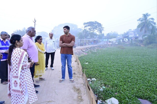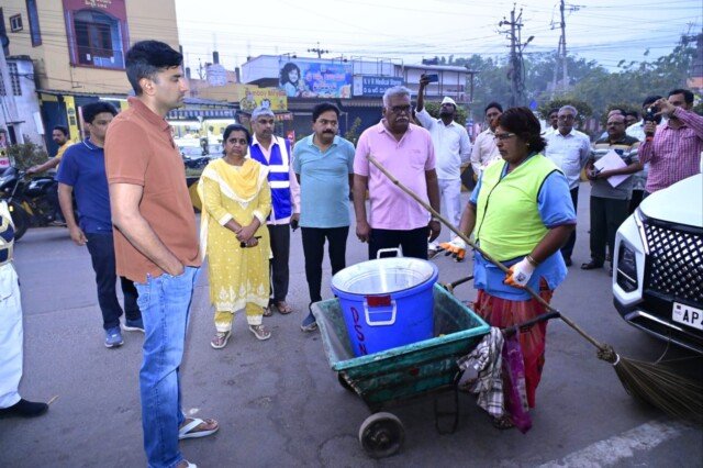 విజయవాడ. ఫిబ్రవరి 5 పశ్చిమ నియోజకవర్గం నేటి తెలుగు పత్రిక ప్రతినిధి: దోమల నియంత్రణకు విస్తృతమైన చర్యలు చేపట్టాలని విజయవాడ నగరపాలక సంస్థ కమిషన ర్ ధ్యానచంద్ర అన్నారు. ఈ సందర్భంగా గురువారం ఉదయం తన పర్యటనలో భాగంగా విశాలాంధ్ర రోడ్డు, మధుర నగర్, రామకృష్ణా పురం, గులాబీ తోట ప్రాంతాలని పర్యటించి క్షేత్ర స్థాయిలో పరిశీలించారు. ఈ మేరకు కమిషనర్ మాట్లాడుతూ ప్రజలకు దోమల వల్ల ఎటువంటి అనారోగ్య సమస్యలు తలె త్తకుండా దోమలను నియంత్రించే చర్యలు తీసుకోవాలని, కేవలం మలేరియా సిబ్బందినే కాకుండా పూర్తి గా ప్రజా ఆరోగ్య శానిటరీ ఇన్స్పెక్టర్లను కూడా భాగ స్వామ్యం చేస్తూ నగర పరిధిలో యాంటీ లార్వా ఆపరేషన్లు విస్తృతంగా నిర్వహించాలని ఆదేశిం చారు. నగర పరిధిలో గల డ్రైన్ లలో పూడికలు తీయాలని, బందర్, రైవస్, ఏలూరు, బుడమేరు కాలువల్లో, నగర పరిధిలో గల కృష్ణానది లో పేరుకు పోయిన వ్యర్ధాలను తొల గించాలని, నగర శివారుల లో కూడా వ్యర్థాలను ఎప్పటికప్పుడు తొలగించే టట్టు చర్యలు తీసుకోవాల ని అన్నారు. ప్రజలు సైడ్ కాలవలో, బందర్, రైవస్, ఏలూరు, కాలువల్లో, కృష్ణా నదిలో వ్యర్థాలను వేయ కుండా, నగరపాలక సంస్థ వారు చేసే చర్యలకు సహ కరించి, వ్యర్థాలను కేవలం పారిశుధ్య కార్మికుల వారికి మాత్రమే ఇవ్వాలని కోరా రు. ప్రజారోగ్య సిబ్బంది కూడా ప్రజలకుమైకు ద్వారా ప్రచారం చేసి అవగాహన కల్పించాలని అన్నారు. తదుపరి రాణి గారి తోట అన్న క్యాంటీన్ ను క్షేత్రస్థాయిలో పరిశీలిచి ప్రజలకు ఎటువంటి ఇబ్బంది కలగకుండా త్రాగునీరు, వాడుక నీటి సరఫరా లో ఎటువంటి లోపం లేకుండా చూసుకోవాలి అని క్యాంటీన్లో పారి శుధ్య నిర్వహణలో ఎటువంటి లోపం ఉండరాదని ఎప్పటికప్పుడు ఏమైనా మరమ్మతులు ఉంటే వెంటనే చేయించాలని అధికారులను ఆదేశించారు. ఈ కార్యక్రమంలో చీఫ్ మెడిక ల్ హెల్త్ ఆఫీసర్ డాక్టర్ కె. అర్జునరావు, చీఫ్ ఇంజనీర్ ఇంచార్జ్ పి. సత్యకుమారి, జోనల్ కమిషనర్ ప్రభు దాస్, ఎగ్జిక్యూటివ్ ఇంజనీర్ ఎ శ్రీనివాస్ రెడ్డి, అసిస్టెంట్ సిటీ ప్లానర్ జగదీష్, అసిస్టెంట్ మెడికల్ హెల్త్ ఆఫీసర్ అన్నపూర్ణ, సిబ్బం ది తదితరులు పాల్గొన్నారు.