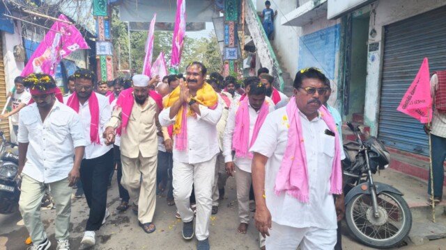 కోదాడ, ఫిబ్రవరి 9(నేటి తెలుగు పత్రిక): కోదాడ మున్సిపాలిటీ పరిధిలోని వార్డులలో టిఆర్ఎస్ నాయకులు,బీఆర్ఎస్ పార్టీ అభ్యర్థుల విజయాన్ని వారికి మద్దతుగా నిర్వహించిన భారీ ర్యాలీలో పాల్గొన్న మాజీ ఎమ్మెల్యే బొల్లం మల్లయ్య యాదవ్ మాట్లాడుతూ తెలంగాణ రాష్ట్రం టిఆర్ఎస్ అధినేత కెసిఆర్ హయాంలో అభివృద్ధి చెందిందని,, అభివృద్ధికి అంకితభావంతో పని చేస్తున్న అభ్యర్థులను గెలిపించాలని, అమలు గాని వాగ్దానాలతో గద్దెనెక్కిన కాంగ్రెస్ను మట్టి కనిపించాలని, ప్రజలు మరోసారి ఆశీర్వదించి ఘన విజయం సాధింపజేయాలని మల్ల యాదవ్ కోరారు. పట్టణంలో వార్డుల వారీగా ఇంటింటా ప్రచారం ర్యాలీలు కొనసాగాయి.