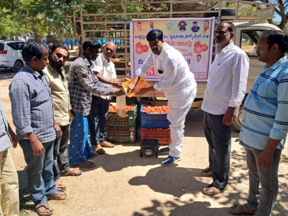 రాయచోటి, ఫిబ్రవరి 13(నేటి తెలుగు పత్రిక): రాష్ట్ర రవాణా, యువజన క్రీడా శాఖ మంత్రి మండిపల్లి రాంప్రసాద్ రెడ్డి ఆదేశాల మేరకు రాయచోటి మార్కెట్ కమిటీ చైర్మన్ అనుంపల్లి రాంప్రసాద్ రెడ్డి ఆధ్వర్యంలో అనంతపురం జిల్లాలో టమాటా రైతులకు గిట్టుబాటు ధర లేనందువలన అనంతపూర్ ఏడిఎమ్ రాయచోటి మార్కెట్ యార్డుకు టమాటాలు పంపినారు వీటిని రాయచోటి మార్కెట్ కమిటీ చైర్మన్ ఆధ్వర్యంలో వినియోగ దారుల ఇండ్ల వద్దకే చేర్చడం జరిగింది. టమాటాలు కొనుగోలు చేసి పరిసర ప్రాంతంలోని వినియోగదారులకు సరఫరా చేయడం జరిగినది.ఈ కార్యక్రమంలో మార్కెట్ చైర్మన్ అనుంపల్లి రాంప్రసాద్ రెడ్డి డైరెక్టర్ కోటికొండ రఘునాథ, యార్డ్ సిబ్బంది పాల్గొన్నారు.