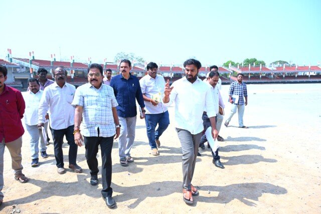 విజయవాడ. ఫిబ్రవరి 13 సెంట్రల్ నేటి తెలుగు పత్రిక ప్రతినిధి: శాసనసభ–శాసనమండలి సభ్యులకు సంబంధించిన లెజిస్లేటివ్ స్పోర్ట్స్ మీట్–2026 నిర్వహణలో భాగంగా, ఈరోజు విజయ వాడలోని ఇందిరాగాంధీ మున్సిపల్ కార్పొరేషన్ స్టేడియంలో ఉన్న క్రీడావే దికలు, మైదానాలు, మౌలి క వసతులను శాప్ చైర్మన్ రవి నాయుడు, విజయవా డ మున్సిపల్ కార్పొరేషన్ మరియు శాప్ ఇంజనీరింగ్ సిబ్బందితో కలిసి క్షుణ్ణంగా పరిశీలించారు. ఈ సంద ర్భంగా శాప్ చైర్మన్ రవి నాయుడు మాట్లాడుతూ, శాసనసభ్యులు, శాసన మండలి సభ్యులు పాల్గొనే ఈ ప్రతిష్ఠాత్మక క్రీడా కార్య క్రమానికి ఎలాంటి లోపాలు తలెత్తకుండా అన్ని ఏర్పా ట్లు అత్యున్నత ప్రమాణా లతో ఉండాలని అధికారు లకు స్పష్టమైన సూచనలు చేశారు. అలాగే నిర్వహణ కు సంబంధించి క్రీడా మైదా నాల స్థితి, డ్రెస్సింగ్ రూము లు, గ్యాలరీలు, లైటింగ్, భద్రతా ఏర్పాట్లు తదితర మౌలిక వసతులను సమ గ్రంగా పరిశీలించి అవసర మైన మెరుగుదలలు చేయాలని సంబంధిత అధికారులను ఆదేశించా రు. లెజిస్లేటివ్ స్పోర్ట్స్ మీట్–2026 ద్వారా ప్రజా ప్రతినిధుల మధ్య ఐక్యత, స్నేహభావం మరింత బలో పేతమవుతుందని ఆయన తెలిపారు. రాష్ట్ర ప్రభుత్వం క్రీడల అభివృద్ధి మరియు మౌలిక వసతుల విస్తరణ కు ప్రత్యేక ప్రాధాన్యం ఇస్తోందనడానికి ఈ క్రీడా వేడుక ఒక నిదర్శ నమని పేర్కొన్నారు. ప్రజాప్రతినిధు లకు మెరుగైన సౌకర్యాలు కల్పించడంతో పాటు, క్రీడా స్ఫూర్తి ని ప్రోత్సహించే విధంగా అన్ని ఏర్పాట్లు చేయాలని అధికారులను ఆదేశించారు. అదేవిధంగా, నిర్ణీత కాలపరిమితిలో పనులు పూర్తి చేసి లెజిస్లే టివ్ స్పోర్ట్స్ మీట్ను విజ యవంతంగా నిర్వహించేందుకు అన్ని శాఖలు సమ న్వయంతో పనిచేయాలని సూచించారు. ఈ క్రీడా కార్యక్రమం ద్వారా రాష్ట్రం లో క్రీడా సంస్కృతి మరి త విస్తరించడంతో పాటు ప్రజలకు కూడా సానుకూల సందేశం చేరుతుందని ఆయన ఆశాభావం వ్యక్తం చేశారు.