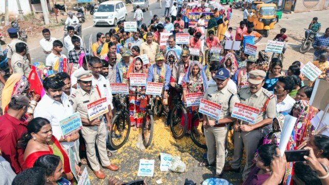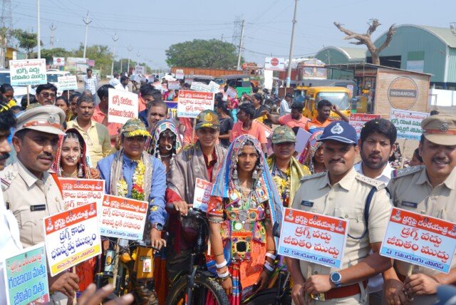 ఎ.కొండూరు ఫిబ్రవరి 14 (నేటి తెలుగు పత్రిక): విద్యార్థులు మాదకద్రవ్యాలు, మత్తు పదార్థాలకు దూరంగా ఉండాలని మైలవరం ఏసిపి వై ప్రసాద్ రావు పేర్కొన్నారు.ఎన్టీఆర్ జిల్లా పోలీస్ కమీషనర్ ఎస్.వి.రాజశేఖర్ బాబు ఆదేశాల మేరకు నిర్వహిస్తున్న డ్రగ్స్ పై దండయాత్ర సైకిల్ ర్యాలీ శనివారానికి 19వ రోజుకు చేరుకుంది.ఎ.కొండూరు పోలీసుల ఆధ్వర్యంలో నిర్వహిస్తున్న సైకిల్ ర్యాలీలో తిరువూరు సిఐ కె.గిరిబాబు,ఎ.కొండూరు ఎస్ ఐ గంధం మహా లక్ష్మణుడు,నాలుగు మండలాల పోలీస్ సిబ్బంది పాల్గొన్నారు. ఎ.కొండూరు మండలం చీమలపాడు పెట్రోల్ బంకు వద్ద నుండి ప్రారంభమైన సైకిల్ ర్యాలీ మెయిన్ సెంటర్ నుండి కొత్తూరు సెంటర్ మీదగా పాతూరు వరకు కొనసాగింది.పాతూరు సెంటర్ లో ఏ ఏ ఎం టి కే దర్బార్ బాబె బొగ్దాద్ షరీఫ్ పీఠాధిపతి,సజ్జదా నషీన్ పీర్జాద సూఫీ మొహమ్మద్ ఖాజా మొహియుద్దీన్ షరీఫ్ షా తాజ్ ఖాదరీ బాబా సైకిల్ ర్యాలీకి ఘన స్వాగతం పలికి దీవించారు.ఈ సందర్భంగా సైకిల్ ర్యాలీలో పాల్గొన్న మహిళా పోలీసులకు శాలువలతో ఘనంగా సత్కరించారు. పోలీస్ అధికారులు,సిబ్బందికి, గ్రామస్తులు సుమారు వెయ్యి మందికి అన్నదాన కార్యక్రమం ఏర్పాటు చేశారు. యువత భవిష్యత్తు కాపాడాలనే లక్ష్యంతో ప్రజల్లో అవగాహన కల్పిస్తూ సమాజం మొత్తాన్ని మత్తురహితంగా మార్చే దిశగా ఈ ఉద్యమం ప్రజా ఆదరణతో శక్తివంతంగా ముందుకు సాగుతోందన్నారు. అంతకుముందు పోలీస్ ఉన్నతాధికారులకు, సైకిల్ ర్యాలీ నిర్వహిస్తున్న ఎన్టీఆర్ జిల్లా మహిళా పోలీసులకు ప్రజా ప్రతినిధులకు, గ్రామస్తులకు,యువతకు గిరిజన ఆడపడుచులు సంప్రదాయ వస్త్రధారణలో రంగుల హారతులతో దీవించి ఘన స్వాగతం పలికారు.సాంస్కృతిక కళాకారుల,డప్పుల మోతకు తాళం వేస్తూ డ్యాన్సులతో ఉర్రూతలూగించారు. మహిళా కళాకారులు కోలాటంతో ఆకట్టుకున్నారు.వివిధ పాఠశాలలకు చెందిన విద్యార్థులు, ఉపాధ్యాయులు, గ్రామస్తులు,యువత, ప్ల కార్డులు చేతబూని ఈ ర్యాలీలో పాల్గొన్నారు.విద్యార్థులు ప్రజలు డ్రగ్స్ కు వ్యతిరేకంగా గళమెత్తి ప్రతిజ్ఞ చేశారు.డ్రగ్స్ వద్దు బ్రో,జీవితమే ముద్దు బ్రో, గంజాయి మత్తు జీవితం చిత్తు,సిగరెట్టు రోగానికి మొదటి మెట్టు,గుట్కా నరకానికి దగ్గరి దారి, గంజాయి స్మశానంలో చోటు ఖరారు,మత్తు పదార్థాలు ఈ మూడింటికి మించిందంటూ నినదించారు. అనంతరం కృష్ణారావు పాలెం పంచాయతీ శివారు డాక్టర్ బి.ఆర్. అంబేద్కర్ బాలుర గురుకులం పాఠశాల, కళాశాలలో ఏర్పాటుచేసిన అవగాహన సదస్సులో ఏసిపి వై.ప్రసాదరావు పాల్గొని మాట్లాడుతూ విద్యార్థులు మంచి నడవడికతో అభివృద్ధిలోకి రావాలని ఆకాంక్షించారు. చదువుపై దృష్టి పెట్టి పాఠశాలకు,కళాశాలకు తల్లిదండ్రులకు, గ్రామానికి మంచి పేరు తీసుకురావాలని ఆకాంక్షించారు. విద్యార్థుల భవిష్య