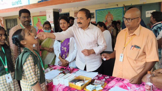 మంగళగిరి ఫిబ్రవరి 17 ( నేటి తెలుగు పత్రిక ప్రతినిధి): మంగళగిరి వీవర్స్ కాలనీ నగరపాలక సంస్థ హైస్కూల్లో జాతీయ నులిపురుగుల నిర్మూలన దినోత్సవాన్ని పురస్కరించుకొని స్థానిక ఇందిరానగర్ యూపీహెచ్సీ ఆధ్వర్యంలో మంగళవారం విద్యార్థులకు ఆల్బెండజోల్ మాత్రలు వేశారు. ముఖ్యఅతిథిగా తెలుగుదేశం పార్టీ గుంటూరు పార్లమెంటు ప్రధాన కార్యదర్శి పోతినేని శ్రీనివాసరావు హాజరై విద్యార్థులకు మాత్రలు వేసి కార్యక్రమాన్ని ప్రారంభించారు. అనంతరం పోతినేని మాట్లాడారు. ప్రభుత్వం ఆరోగ్యవంతమైన సమాజం కోసం, పిల్లల మంచి ఆరోగ్యం కోసం నులిపురుగుల నిర్మూలనకు దేశవ్యాప్తంగా ఆల్బెండజోల్ మాత్రలు పంపిణీ చేపట్టిందన్నారు. చిన్నపిల్లలు రక్తహీనత, నీరసం, కడుపునొప్పి, వాంతులు, వికారం వంటి సమస్యల బారిన పడుతున్నారన్నారు. పిల్లల సంపూర్ణ ఆరోగ్యం కోసం ప్రభుత్వం కార్యక్రమం చేపట్టిందన్నారు. మాత్రలు పంపిణీ చేయడంతో పాటు విద్యార్థులు భోజనానికి ముందు, టాయిలెట్స్ కు వెళ్ళిన తర్వాత చేతులు శుభ్రపరచుకోవటం వంటి ఆరోగ్య సూత్రాలను హెల్త్ సెంటర్ వైద్యులు డాక్టర్ అనూష పిల్లలకు తెలియజేయడం అభినందనీయమన్నారు. హైస్కూల్లో ఎనిమిది వందల మంది పిల్లలకు ఆల్బెండజోల్ మాత్రలు పంపిణీ చేశారన్నారు. విద్యార్థులు వైద్యుల సూచనలను, ఆరోగ్య సూత్రాలను పాటిస్తూ క్రమశిక్షణతో కూడిన విద్యను అభ్యసించి సమాజం గౌరవించే వ్యక్తులుగా ఎదగాలన్నారు. ఈ కార్యక్రమంలో డీపీఎమ్ఓ డాక్టర్ సుజాత, హెల్త్ సెంటర్ మెడికల్ ఆఫీసర్ డాక్టర్ పీ అనూష, మలేరియా సబ్ యూనిట్ అధికారి ఏ శ్రీమన్నారాయణ, హైస్కూల్ హెచ్ఎం వెంకటేశ్వరరావు, హెల్త్ సెంటర్, మలేరియా సిబ్బంది తదితరులు పాల్గొన్నారు.