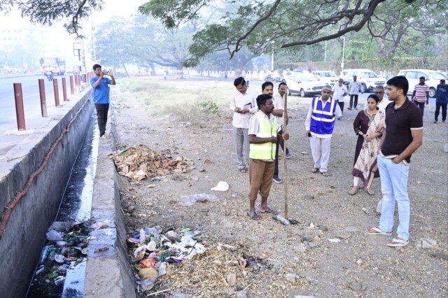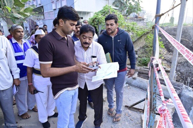 విజయవాడ. ఫిబ్రవరి 18 సెంట్రల్ నేటి తెలుగు పత్రిక ప్రతినిధి: నగరంలో డిసిల్టింగ్ పనులు నిరంతరాయంగా జరుగుతుండాలని విజయ వాడ నగరపాలక సంస్థ కమిషనర్ ధ్యానచంద్ర అన్నారు. ఈ సందర్భంగా బుధవారం ఉదయం తన పర్యటనలో భాగంగా మధురానగర్, దేవీనగర్, బి ఆర్ టి ఎస్ రోడ్, సింగ్ నగర్, కొత్త రాజరాజేశ్వరి పేట ప్రాంతాలన్నీ పర్యటించి క్షేత్రస్థాయిలో పరిశీలించారు. ఈ మేరకు కమిష నర్ మాట్లాడుతూ నగరం లో డీసిల్టింగ్ పనులు నిరంతరాయంగా జరుగుతుం డాలని, సైడ్ కాలువల్లో పూడికలు, సిల్ట్ కచ్చితంగా తొలగించాలని అన్నారు. కొత్త రాజరాజేశ్వరి పేటలో నిర్మాణం దశలో ఉన్న అవుట్ఫాల్ డ్రైన్ ను పరిశీలించారు, నిర్మాణ పనులను త్వరగా పూర్తి చేసి త్వరలో అందుబాటు లోకి తీసుకురావాలని అన్నారు. మధుర నగర్ లోని రైల్వే అండర్ బ్రిడ్జి పనులను పరిశీలించి, ప్రజ లకు ఎటువంటి ఇబ్బంది కలగకుండా చూసుకోవాల ని అధికారులను ఆదేశించారు. తదుపరి అజిత్ సింగ్ నగర్లో గల అన్నా క్యాంటీన్ ను క్షేత్రస్థాయిలో పరిశీలించారు. అక్కడికి వచ్చే ప్రజలకు ఎటువంటి ఇబ్బందులు కలగకుండా చూసుకోవాలని, పారిశు ధ్య నిర్వహణలో ఎటువంటి లోపం ఉండరాదని, ప్రజలకు ఆరోగ్యకరమైన వాతావరణాన్ని అందించాలని అధికారులను ఆదేశిం చారు. ఈ కార్యక్రమంలో జోనల్ కమిషనర్ కె. ప్రభుదాస్, ఎగ్జిక్యూటివ్ ఇంజనీర్ ఎ. శ్రీనివాస్ రెడ్డి, అసిస్టెంట్ సిటీ ప్లానర్ రాంబాబు, అసిస్టెంట్ మెడికల్ హెల్త్ ఆఫీసర్ డాక్టర్ అన్నపూర్ణ సిబ్బంది, తదితరులు పాల్గొన్నారు.