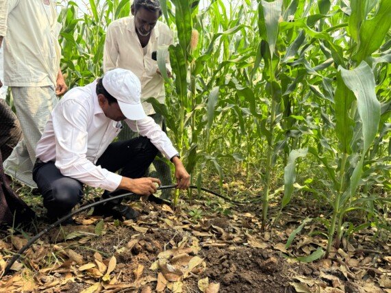 ఎ. కొండూరు ఫిబ్రవరి 18 (నేటి తెలుగు పత్రిక): సూక్ష్మ సేద్యంతో తక్కువ నీటితో ఎక్కువ విస్తీర్ణంలో పంటలు సాగుచేయడం ద్వారా, అధిక దిగుబడులు సాధించడం వంటి బహుళ ప్రయోజనాలు ఉంటాయని.. ఈ నేపథ్యంలో అన్నదాతలు ప్రభుత్వం అందిస్తున్న సూక్ష్మ సేద్య పథకాలను సద్వినియోగం చేసుకోవాలని జిల్లా కలెక్టర్ డా. జి.లక్ష్మీశ అన్నారు.కలెక్టర్ లక్ష్మీశ బుధవారం తిరువూరు ఆర్డీవో కె.మాధురి, అధికారులతో కలిసి ఎ.కొండూరు మండలం, రేపూడి గ్రామ పంట పొలాలను సందర్శించారు. సూక్ష్మ సేద్యం పథకం ద్వారా ప్రయోజనం పొందు తున్నరైతు జి.విష్ణువర్ధన్రెడ్డి సాగుచేస్తున్న మొక్కజొన్న పంటను, పరికరాలను పరిశీలించారు. పథకం ప్రయోజనాలపై రైతులు సంతృప్తి వ్యక్తం చేశారు. ఈ సందర్భంగా కలెక్టర్ లక్ష్మీశ మాట్లాడుతూ వ్యవసాయ, ఉద్యాన పంటల సాగులో సాగునీటి యాజమాన్యం చాలా ప్రధానమైనదని.. సాగునీటి వనరుల సద్వినియోగంలో బిందు సేద్యం, తుంపర సేద్యం చాలా కీలకమైనవన్నారు. 2025-26లో 2,200 హెక్టార్లకు రాయితీపై బిందు, తుంపర సేద్య పరికరాలను అందించాలనే లక్ష్యంతో జిల్లాలో ఏపీ మైక్రో ఇరిగేషన్ పథకాన్ని విజయవంతంగా అమలు చేస్తున్నామన్నారు.