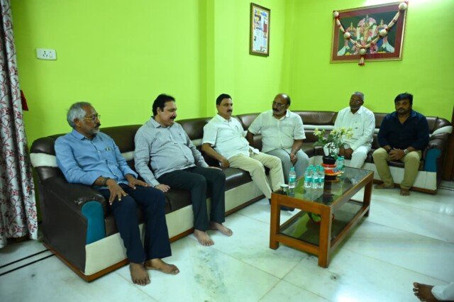 విజయవాడ. ఫిబ్రవరి 23 సెంట్రల్ నేటి తెలుగు పత్రిక ప్రతినిధి: మాజీ ఎమ్మెల్సీ, ప్రముఖ బీసీ నాయకులు ఐలాపు రం వెంకయ్య కుటుంబ సభ్యులను కూటమి ప్రభుత్వ ఎమ్మెల్యే విజ యవాడ పశ్చిమ నియోజ కవర్గ ఎమ్మెల్యే సుజనా చౌదరి పరామర్శించారు. ఈ సందర్భంగా విజయ వాడ గాంధీనగర్ లోని వెంకయ్య స్వగ్రు హానికి వెళ్లి ఆయన చిత్ర పటం వద్ద శ్రద్దాంజలి ఘటించా రు. ఐలాపురం వెంకయ్య తనయుడు, మాజీ ఆర్టీఐ కమిషనర్ ఐలాపురం రాజాను, అరుణకుమార్ లను పలకరించి తమ సంతాపాన్ని ప్రకటించారు వెంకయ్య మృతి పట్ల తన ప్రగాఢ సానుభూతి నీ వ్యక్తం చేశారు. ఈ కార్యక్రమంలో బీజేపీ నాయకుడు పైలా సురేష్, శ్రీనివాస్ , తదితరులు పాల్గొన్నారు.