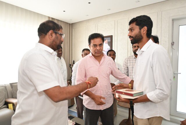 నేటి తెలుగు పత్రిక: రాష్ట్రంలో పిన్న వయస్కుడైన మునిసిపల్ కార్పోరేటర్ గోవాడ గుణచరిత్ (గుణ)కు బీఆర్ఎస్ వర్కింగ్ ప్రెసిడెంట్ కే.టీ.రామారావు తన ఆశీస్సులు అందజేశారు.కొత్తగా ఏర్పడిన కొత్తగూడెం మునిసిపల్ కార్పొరేషన్ 39వ డివిజన్ (పాల్వంచ) నుంచి గుణ 22 ఏండ్ల చిన్న వయస్సులోనే రాజకీయాలలో ప్రవేశించి బీఆర్ఎస్ నుంచి గెలుపొందారు.పార్లమెంటరీ పార్టీ డిప్యూటీ లీడర్, రాజ్యసభ సభ్యులు వద్దిరాజు రవిచంద్ర గురువారం ఉదయం పార్టీ కార్యనిర్వహక అధ్యక్షులు కేటీఆర్ గారిని కలిసిన సందర్భంగా గుణను పరిచయం చేశారు.ఈ సందర్భంగా కేటీఆర్ గారు గుణ భుజం తట్టి ఆశీర్వదించారు, అభినందనలు తెలిపారు.