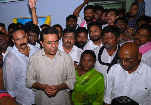 కోదాడ ,ఫిబ్రవరి 27(నేటితెలుగు పత్రిక): కర్ల రాజేష్ కుటుంబానికి న్యాయం జరగకపోతే జాతీయస్థాయిలో ఉద్యమానికి శ్రీకారం చుడతానని బిఆర్ఎస్ పార్టీ వర్కింగ్ ప్రెసిడెంట్ కేటీఆర్ ప్రభుత్వాన్ని హెచ్చరించారు. గురువారం రాత్రి కోదాడ పట్టణంలో ఇటీవల లాకప్ డెత్ లో మృతి చెందిన కర్ల రాజేష్ కుటుంబాన్ని మాజీ మంత్రి జగదీష్ రెడ్డి, మాజీ ఎమ్మెల్యేలు బొల్లం మల్లయ్య యాదవ్, గాదారి కిషోర్, కంచర్ల భూపాల్ రెడ్డి, ఎంపీ వద్దిరాజు రవిచంద్ర, రాష్ట్ర నాయకులు ఆర్ఎస్ ప్రవీణ్ కుమార్ లతో కలిసి తల్లి లలితమ్మను ఆయన పరామర్శించారు. రాజేష్ మృతికి కారకులైన పోలీసు యంత్రాంగంపై చర్యలు తీసుకోకపోవడం పై ఆగ్రహం వ్యక్తం చేశారు. బాధ్యులైన వారిని ఎందుకు కాపాడుతున్నారో జవాబు చెప్పాలన్నారు. దుర్మార్గానికి ఒడిగట్టిన డిఎస్పి, సిఐ,ఎస్ఐ లను విధుల నుండి సస్పెండ్ చేయాలన్నారు. డీఎస్పీపై చర్యలు తీసుకోకుండా స్థానిక మంత్రి సివిల్ సప్లై శాఖలో పదోన్నతి కల్పించడం వెనకాల ఆంతర్యం ఏమిటి అన్నారు. తమ ప్రభుత్వ హయాంలో లాక్ అప్ డెత్ లో మృతి చెందిన మరియమ్మ కేసులో పూర్తి న్యాయం చేశామన్నారు. ప్రస్తుత ప్రభుత్వం రాజేష్ కుటుంబాన్ని తీవ్ర అన్యాయానికి గురి చేసిందని ఆవేదన వ్యక్తం చేశారు. పార్టీ పక్షాన బాధిత కుటుంబానికి ఐదు లక్షల సహాయాన్ని ప్రకటించారు. భవిష్యత్తులో బిఆర్ఎస్ పార్టీ కర్ల రాజేష్ కుటుంబానికి అండగా ఉంటుందని హామీ ఇచ్చారు. రాజేష్ కుటుంబానికి అండగా నిలుస్తున్న ఎమ్మార్పీఎస్ వ్యవస్థాపక అధ్యక్షులు మందకృష్ణ మాదిగ ప్రజా సంఘాలకు వివిధ రాజకీయ పక్షాలకు కృతజ్ఞతలు తెలిపారు. అనంతరం రాజేష్ తల్లితో కలిసి రాజేష్ చిత్రపటానికి పూలమాలలు వేసి నివాళులు అర్పించారు. కాగా కేటీఆర్ ను చూసేందుకు అభిమానులు పెద్ద ఎత్తున తరలివచ్చారు. ఈ కార్యక్రమంలో స్థానిక నాయకులు ఎంఆర్పిఎస్ నాయకులు పాల్గొన్నారు.