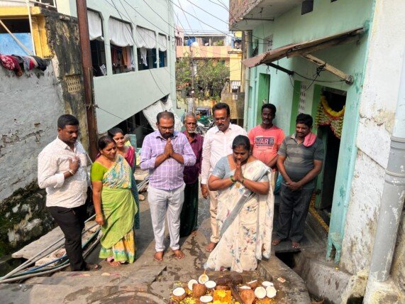 విజయవాడ, మార్చి 9, నేటి తెలుగు పత్రిక: స్థానిక 44వ డివిజన్ లోని నాలుగు స్తంభాల సెంటర్ వాణి బడ్డీ కొట్టు సందులో ఏడు లక్షల రూపాయల వ్యయంతో నూతనంగా మెట్లు, డ్రైన్ల నిర్మాణానికి చర్యలు తీసుకుంటున్నట్లు 44వ డివిజన్ కార్పొరేటర్ మైలవరపు రత్నకుమారి చెప్పారు. సోమవారం నూతన పనులకు కార్పొరేటర్ రత్నకుమారి పూజా కార్యక్రమం నిర్వహించి కొబ్బరికాయ కొట్టి పనులు ప్రారంభించారు. ఈ సందర్భంగా రత్నకుమారి మాట్లాడుతూ విజయవాడ ఎంపీ కేశినేని శివనాథ్, విజయవాడ పశ్చిమ శాసనసభ్యులు వై సుజనా చౌదరి మార్గదర్శకత్వంలో 44 డివిజన్ లో అనేక సంక్షేమ కార్యక్రమాలు, అభివృద్ధి కార్యక్రమాలు నిర్వహిస్తూ వస్తున్నామని చెప్పారు. డివిజన్ సమగ్ర అభివృద్ధి ధ్యేయంగా తాము పని చేస్తున్నట్లు ఆమె వివరించారు. 44వ డివిజన్ తెలుగుదేశం నాయకులు మైలవరపు దుర్గారావు మాట్లాడుతూ విజయవాడ నగరాన్ని అన్ని విధాల అభివృద్ధి చేసేందుకు ఎంపీ కేశినేని శివనాధ్, పశ్చిమ ఎమ్మెల్యే వై.సుజనా చౌదరి అహర్నిశం కృషి చేస్తున్నారని కొనియాడారు. 44వ డివిజన్ లోని కొండ ప్రాంతంలో అవసరమైన ప్రాంతాల్లో మెట్లు, డ్రైన్లు నిర్మాణం పనులు నిర్వహిస్తున్నామని, అలాగే అవసరమైన చోట్ల సంబంధిత పనులకు తగిన కార్యాచరణ రూపొందిస్తున్నట్లు ఆయన చెప్పారు. ఈ కార్యక్రమంలో నగరపాలక సంస్థ ఏఈ బ్రహ్మానంద రెడ్డి, ఎమ్యూనిటీ సెక్రటరీ హర్షిత, కాంట్రాక్టర్ బత్తుల వెంకటేష్, స్థానికులు పాల్గొన్నారు.