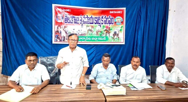 సూర్యాపేట,mar 09, నేటి తెలుగు పత్రిక: తెలంగాణ వ్యవసాయ కార్మిక సంఘం రాష్ట్ర4వ మహాసభల ఆహ్వాన సంఘం సమావేశం మార్చి 14న మహబూబ్ నగర్ జిల్లా కేంద్రంలో జరుగుతుందని ఈ ఆహ్వాన సంఘం సమావేశాన్ని విజయవంతం చేయాలని తెలంగాణ వ్యవసాయ కార్మిక సంఘం రాష్ట్ర అధ్యక్షులు జి. నాగయ్య పిలుపునిచ్చారు. సూర్యాపేట జిల్లా కేంద్రంలోని మల్లు వెంకట నరసింహారెడ్డి భవన్ లో జరిగిన తెలంగాణ వ్యవసాయ కార్మిక సంఘం జిల్లా విస్తృతస్థాయి సమావేశానికి ముఖ్య అతిథిగా హాజరై ప్రసంగించారు. పోరాటాల పురిటి గడ్డ మహబూబ్ నగర్ లో2026 మే చివరి వారంలో రాష్ట్ర మహాసభలు జరగనున్నాయని పేర్కొన్నారు. ఈ మహాసభలు మూడు రోజులపాటు అత్యంత ఉత్సావంతమైన వాతావరణంలో జరుగుతాయన్నారు. ఈ మహాసభలకు రాష్ట్ర నలుమూలల నుండి వెయ్యి మంది వ్యవసాయ కార్మిక ఉద్యమ ప్రతినిధులు, వ్యవసాయ నిపుణులు, ఆర్థికవేత్తలు హాజరుకారున్నట్టు చెప్పారు. కేంద్రంలో బిజెపి అధికారంలోకి వచ్చిన తర్వాత అనేక పోరాటాల ద్వారా సాధించుకున్న అనేక చట్టాలను రద్దు చేస్తుందని విమర్శించారు. పెరిగిన ధరలతో తీవ్ర ఇబ్బందులు పడుతున్న పేదలపై వంటగ్యాస్ పై 60 రూపాయలు పెంచడం వల్ల పేద, మధ్యతరగతి ప్రజలకు అదనపు భారం పడుతుందని ఆవేదన వ్యక్తం చేశారు. కాంగ్రెస్ ప్రభుత్వం ఎన్నికల ముందు ప్రజలకు అనేక వాగ్దానాలు ఇచ్చి అధికారంలోకి వచ్చి రెండు సంవత్సరాలు పూర్తయిన ఇచ్చిన 6 గ్యారంటీలు నేటికీ అమలు కాలేదు అన్నారు. రైతాంగానికి రైతు భరోసా రైతుల అకౌంట్ లో జమ చేయలేదన్నారు. రైతులు కొండంత అండతో ఎదురుచూస్తున్న కాంగ్రెస్ ప్రభుత్వం పట్టించుకోవడం లేదన్నారు. కాంగ్రెస్ అధికారంలోకి వస్తే భూమిలేని వ్యవసాయ కార్మికులకు ఏడాదికి 12000 ఇస్తామని చెప్పిన రేవంత్ ప్రభుత్వం రెండు సంవత్సరాలు అవుతున్న నేటికీ ఇచ్చిన హామీని అమలు చేయలేదని విమర్శించారు. ఖమ్మం జిల్లాలోని వెలుగుమట్లలో పేదలు ఇండ్ల స్థలాల కోసం భూదాన్ భూముల్లో గుడిసెలేసుకొని నివాసం ఉంటున్న పేదలపై బుల్డోజర్ల ద్వారా దాడి చేసి 700 మందిని నిర్వాసితులు చేసిందన్నారు. ప్రభుత్వం తక్షణమే అర్హులైన వారందరికీ ఇంటి స్థలానికి పట్టా ఇచ్చి ఇందిరమ్మ ఇల్లు నిర్మించి ఇవ్వాలన్నారు. సర్వం కోల్పోయిన పేదలకు ప్రభుత్వం ఐదు లక్షల రూపాయలు నష్టపరిహారం చెల్లించాలన్నారు. బుల్లోజర్ల పాలన కొనసాగిస్తున్న రేవంతును ప్రజలు ఓడించడం ఖాయమన్నారు.
