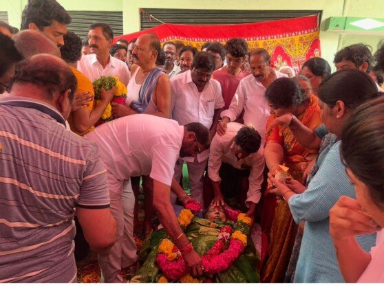 ఖమ్మం, మార్చి 14(నేటి తెలుగు పత్రిక): ఖమ్మం నగరానికి చెందిన ప్రముఖ వ్యాపారవేత్త, కాంగ్రెస్ సీనియర్ నాయకుడు పొదిల రవికుమార్ మాతృమూర్తి విజయలక్ష్మీ శుక్రవారం దివంగతులయ్యారు.బీఆర్ఎస్ పార్లమెంటరీ పార్టీ డిప్యూటీ లీడర్, రాజ్యసభ సభ్యులు వద్దిరాజు రవిచంద్ర,మున్నూరుకాపు సంఘం రాష్ట్ర ఉపాధ్యక్షులు ఆకుల గాంధీ, జిల్లా అధ్యక్షులు పారా నాగేశ్వరరావు,కాపు జేఏసీ ఛైర్మన్ చందు జనార్థన్, బీఆర్ఎస్ సీనియర్ నాయకుడు తోట రామారావు తదితర ప్రముఖులు శనివారం ఉదయం వారి స్వగ్రామం ముదిగొండ మండలం ఖానాపురంలో ఆమె భౌతికకాయాన్ని సందర్శించి పూలదండలు వేసి ఘనంగా నివాళులర్పించారు.స్వర్గీయ విజయలక్ష్మీ అంతిమయాత్రలో పార్థివదేహాన్ని ఉంచిన పాడేను రవిచంద్ర, గాంధీ, నాగేశ్వరరావు తదితర ప్రముఖులు మోసి ఆమె ఆత్మకు శాంతి చేకూరాలని భగవంతున్ని ప్రార్థించారు.దివంగత విజయలక్ష్మీ భర్త దేవేందర్, కుమారుడు రవికుమార్,కుమార్తె శైలజ, వారి కుటుంబ సభ్యులను రవిచంద్ర, గాంధీ, నాగేశ్వరరావు,జనార్థన్, రామారావు, పోలీస్ అధికారులు రామోజీ రమేష్,సాధుల సారంగపాణి, ఎక్సైజ్ శాఖ అధికారి శ్యామ్, బీఆర్ఎస్ నాయకుడు బచ్చు విజయ్ కుమార్ తదితరులు పరామర్శించి తమ ప్రగాఢ సానుభూతి తెలిపారు.