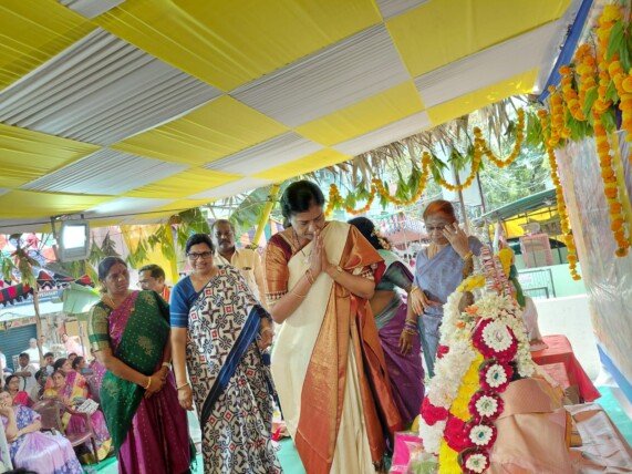 విజయవాడ. మార్చి 27 ఈస్ట్ నేటి తెలుగు పత్రిక ప్రతినిధి: ఎన్టీఆర్ జిల్లా, 8వ డివిజ న్ శ్రీరామ్ నగర్లో ఘనం గా నిర్వహించిన శ్రీరామ నవమి వేడుకల్లో ఎన్టీఆర్ జిల్లా తెలుగుదేశం పార్టీ అధ్యక్షురాలు గద్దె అను రాధ పాల్గొన్నారు. ఈ సందర్భంగా పందిరిలో ప్రత్యేక పూజలు నిర్వహిం చి, భక్తులతో కలిసి శ్రీ సీతారాముల కళ్యాణ మహోత్సవాన్ని వీక్షించా రు. ఈ సందర్భంగా గద్దె అనురాధ మాట్లాడుతూ, శ్రీరాముడు భారతీయ సంస్కృతిలో ధర్మానికి ప్రతీకగా నిలిచారని అన్నారు. రాముని జీవి తం ప్రతి ఒక్కరికీ ఆదర్శ మని, ఆయన పాలన రామరాజ్యం ప్రజలకు న్యాయం, సమానత్వం, శాంతి, సుసంపన్నతకు ప్రతీకగా నిలిచిందని పేర్కొన్నారు. అలాగే శ్రీరా ముని దయ కటాక్షాలు రాష్ట్రంపై ఉండి, ప్రజలకు మేలు చేసే విధంగా చంద్ర న్న పాలన కొనసాగాలని ఆకాంక్షించారు.రామరాజ్యం స్ఫూర్తితో ప్రభుత్వం పనిచేస్తూ, ప్రతి వర్గానికి న్యాయం జరిగేలా పాలన సాగిస్తుందని తెలిపారు. ప్రస్తుతం సమాజంలో కూడా రాముని ఆలోచన లు, విలువలు జేఅనుస రించడం అత్యంత అవస రమని ఆమె చెప్పారు. ప్రజల సంక్షేమమే ప్రధాన లక్ష్యంగా పాలన కొనసా గాలని, రాష్ట్రం మొత్తం అభివృద్ధి పథంలో ముందుకు సాగాలని ఆకాంక్షించారు. రాష్ట్ర ప్రజలందరికీ శ్రీరామ నవ మి శుభాకాంక్షలు తెలుపు తూ, ప్రతి ఇంటా సుఖ శాంతులు నెలకొనాలని, ప్రతి కుటుంబం ఆనందం గా ఉండాలని ఆమె ప్రార్థించారు.